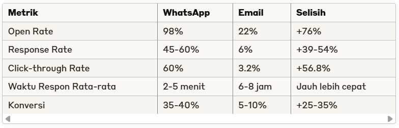 Tabel Perbandingan Tingkat Engagement WhatsApp vs Email